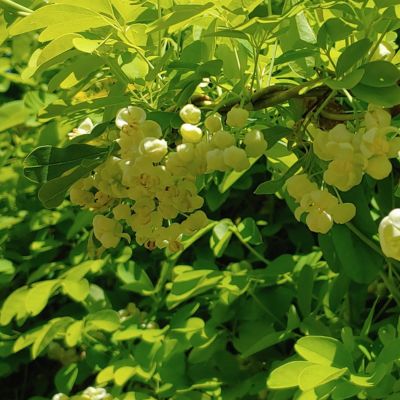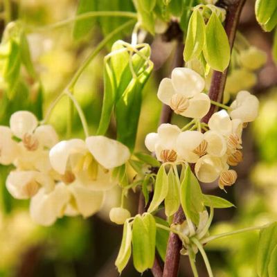 La floraison a lieu en avril-mai, sous forme de petites fleurs blanches à crème, souvent légèrement rosées, parfumées (odeur vanillée ou chocolatée), regroupées en grappes pendantes très décoratives. Après pollinisation croisée, elle peut produire des fruits pourpres allongés, comestibles mais peu fréquents sous nos climats. Rustique jusqu’à -15 à -20 °C, l’akebie Shirobana s’adapte à de nombreuses situations, en sol frais, drainé, au soleil non brûlant ou à mi-ombre. C’est une alternative originale aux clématites et glycines, avec une floraison plus discrète mais plus longue et un feuillage décoratif.
