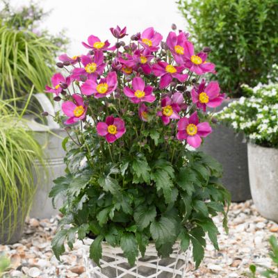 Vente en ligne de plants d'Anémone du Japon Fantasy Red Riding Hood ®une vivace au charme intemporel, avec ses fleurs rouge-rose vif qui illuminent le jardin en fin d'été et en automne. Lire la suite