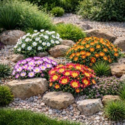 Rustique jusqu'à -10°C, on plante le Delosperma au soleil et dans un sol sec, très bien drainé.