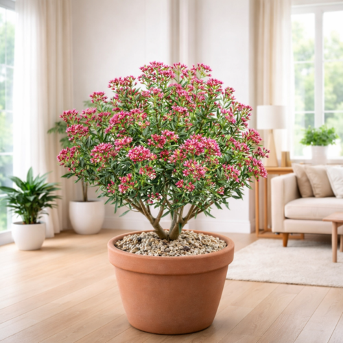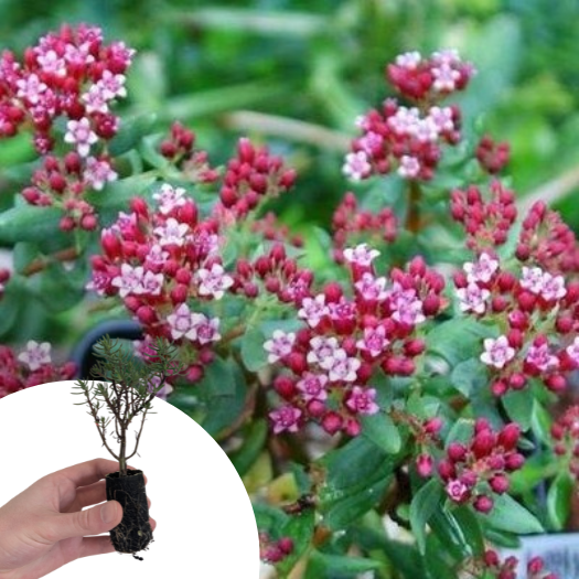 Au printemps, il se couvre de petites fleurs étoilées rosé, discrètes mais nombreuses, qui apportent un charme supplémentaire. Son feuillage persistant et sa silhouette naturelle rappellent un mini arbuste méditerranéen. Rustique jusqu’à -10°C, il est surtout cultivé en pot ou en intérieur lumineux. En mini-motte, il s’installe facilement et permet de créer rapidement de jolies compositions.