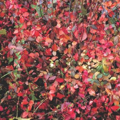 Son feuillage vert foncé est décoratif toute l’année. En automne et hiver, il prend des teintes rosées à pourpres, surtout en exposition froide et ensoleillée, ajoutant une touche de couleur vive au jardin ou aux compositions. Son port étalé et rampant en fait une excellente plante couvre-sol, mais il peut aussi grimper légèrement sur un support s’il est palissé.