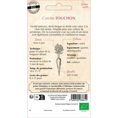 Ruban 3m Graines Bio Carotte Touchon (Ferme de Sainte Marthe)