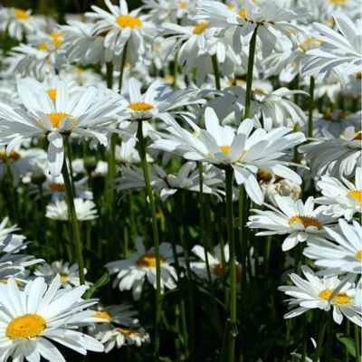 Vente en ligne de plants de Marguerite des prés Reine de maiLeucanthemum vulgare Maikönigin, ou Marguerite des prés Reine de mai, offre une floraison abondante de marguerites blanches dès mai. Vivace rustique idéale en massif, prairie ou bouquet. Lire la suite