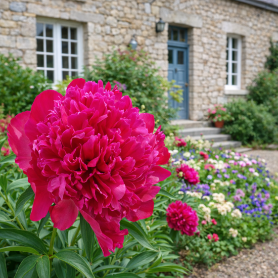 La Pivoine Karl Rosenfield trouve naturellement sa place en massif, où elle structure l’espace grâce à son port dense et à la richesse de sa floraison. Elle s’associe harmonieusement avec des Rosiers, des Iris, des Delphiniums ou des vivaces à floraisons plus légères qui contrastent avec ses grandes fleurs doubles. Installée en isolé, elle devient un point focal remarquable au printemps. En bordure ou le long d’une allée, elle apporte une touche romantique et élégante. Cette pivoine est également très appréciée pour la confection de bouquets : ses tiges solides et ses fleurs opulentes tiennent bien en vase. Sur une terrasse ou un grand balcon, elle peut être cultivée en pot profond, à condition d’offrir un contenant généreux et un bon drainage. Elle crée alors une ambiance raffinée et colorée, transformant les espaces extérieurs en véritables jardins fleuris dès la fin du printemps.
