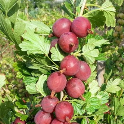 Le groseiller à maquereaux Captivator possède de nombreux fruits rouges bordeaux de moyen calibre. La récolte est abondante et se fait en juillet. Les feuilles sont vertes et caduques.