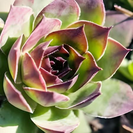 En été, certaines rosettes peuvent produire une hampe florale portant de petites fleurs étoilées roses, après quoi la rosette florifère disparaît, laissant place aux jeunes pousses. Rustique jusqu’à -20°C, le Sempervivum est une plante particulièrement robuste et facile à cultiver.