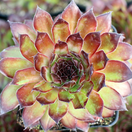 Vente en ligne de plants de Joubarbe Kalinda en mini-motteSucculente en rosette aux couleurs changeantes vert et rouge. Parfaite en rocaille, mur végétal sec, terrarium lumineux ou mini composition déco. Lire la suite