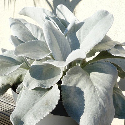 Originaire des régions côtières d’Amérique du Sud, le Senecio candicans est une plante adaptée aux climats secs et venteux. La variété Angel Wings ® a été sélectionnée pour son feuillage spectaculaire et sa résistance aux conditions difficiles.