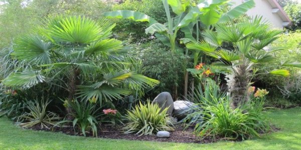 Une fois le palmier planté, on pose un paillage au pied pour le protéger du froid en hiver, contre la chaleur en été, pour diminuer les opérations de désherbage au pied.