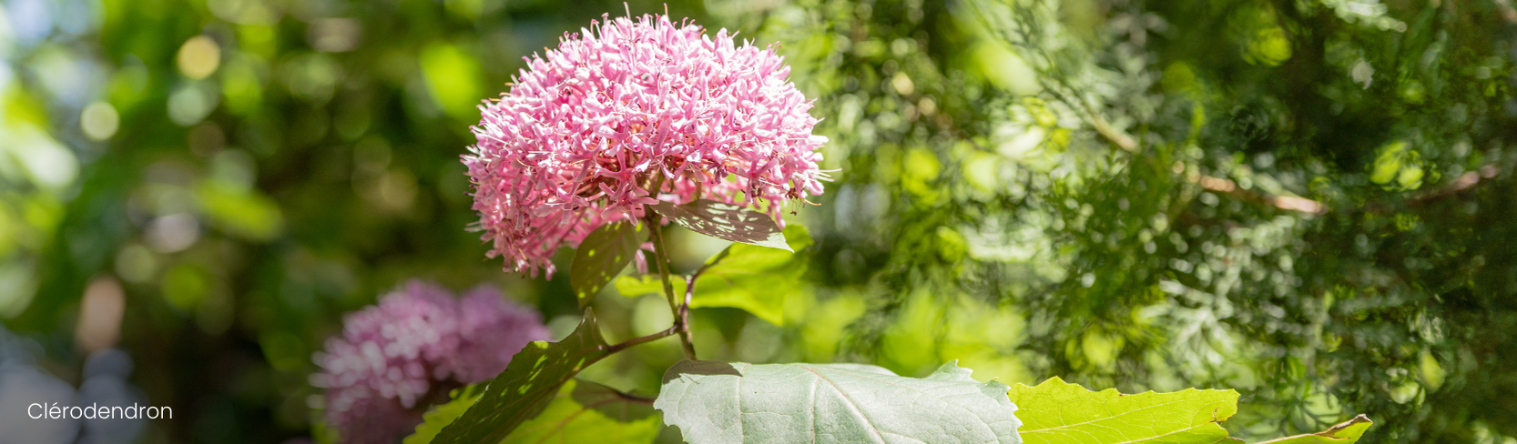 Le clérodendron (Clerodendrum bungei ) : Sa floraison parfumée est suivie de grappes de fruits d'un bleu métallique éclatant, entourés de bractées rouge vif.