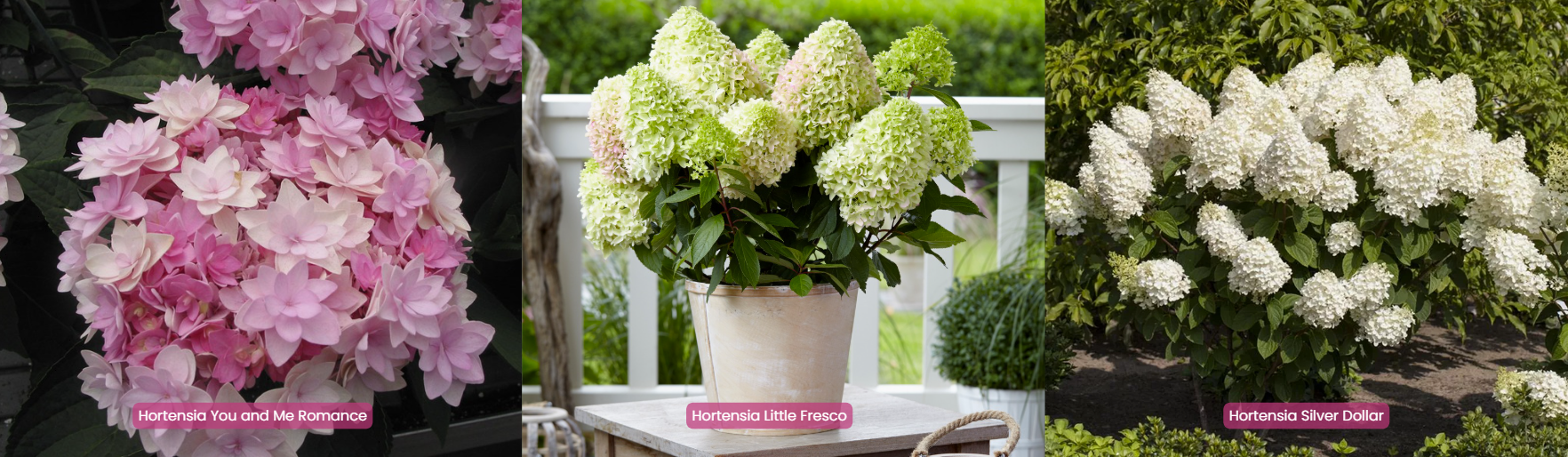 • Hydrangea arborescens (hortensia arbustif type Annabelle ou CandyBelle Bubble Gum) : son feuillage est plus léger et ses fleurs blanches, roses ou vert clair plus grosses. Il se bouture sans souci, souvent même avec de beaux résultats rapides