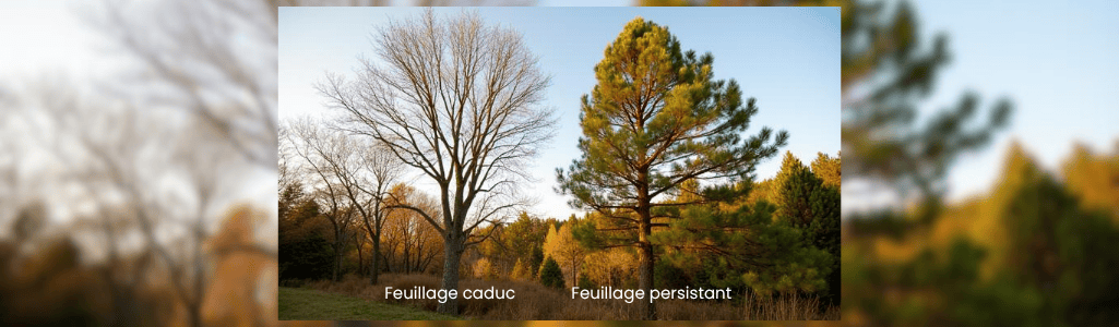 Un feuillage caduc tombe à l'automne. C'est souvent plus esthétique car le feuillage change de couleur, mais cela laisse le jardin nu en hiver.
