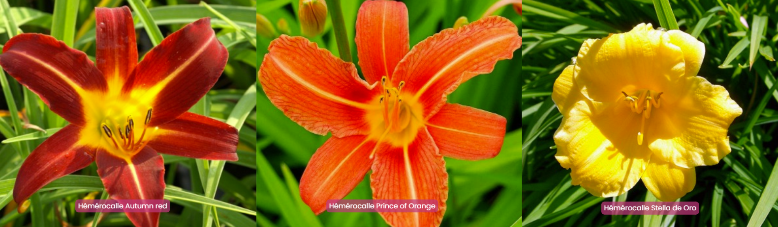 Reconnues et appréciées pour leurs fleurs aux teintes chaudes, les hémérocalles fleurissent aussi dans des tonalités roses, pourpres, violettes, blanches...