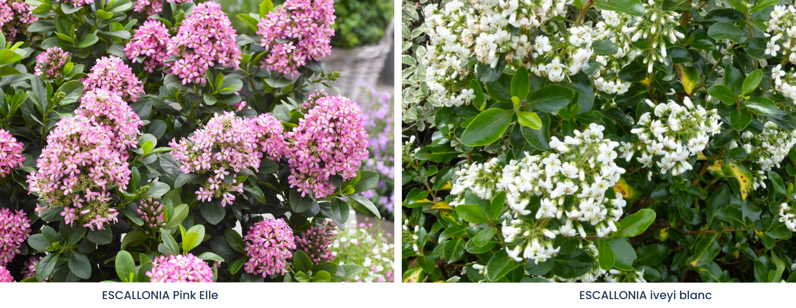 L'escallonia est parfait pour les haies fleuries, avec le deutzia, le laurier rose, l'éléagnus, le buddleia ou les cornouillers. En massif, il peut s'associer à des gauras, des sauges arbustives ou des lavandes.