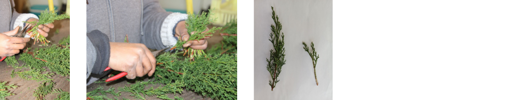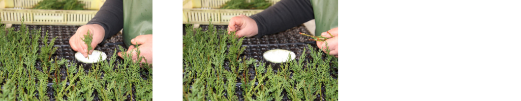 Une fois prélevées, les boutures sont préparées avant leur mise en culture.